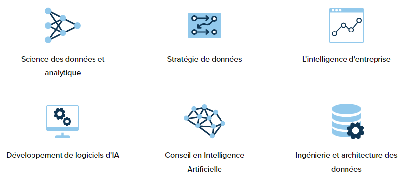 Nous utilisons des outils et des algorithmes d’apprentissage automatique (ML) pour aider les entreprises à développer des produits et des solutions basés sur l’IA. Notre équipe possède une connaissance et une expérience approfondies de la conception, de la mise en œuvre et de l’intégration de solutions d’intelligence artificielle dans l’environnement commercial du client.