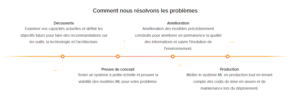 Soit nos clients n’ont pas leurs propres équipes de data science, soit leur équipe est trop petite pour faire face à toutes les tâches dans l’environnement d’une entreprise en forte croissance.